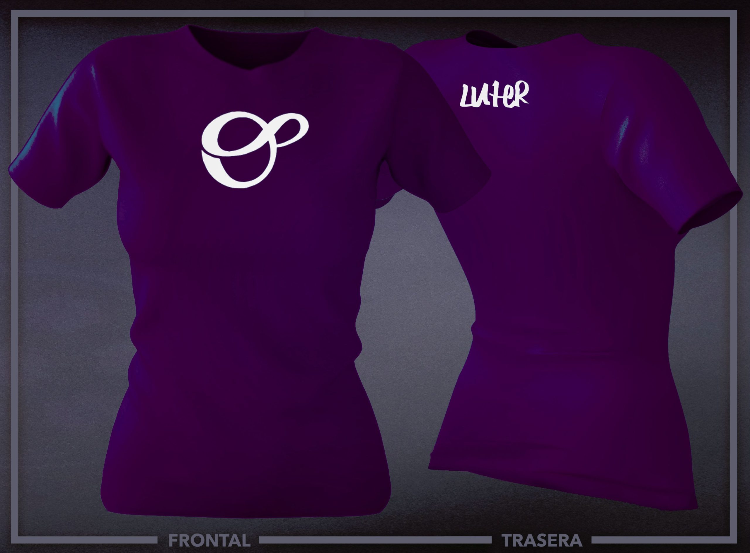 Camiseta entallada en color púrpura con el logo de la gorra en la parte frontal y con el logo de LUTER en la parte trasera. Disponible en las tallas S, M y L.